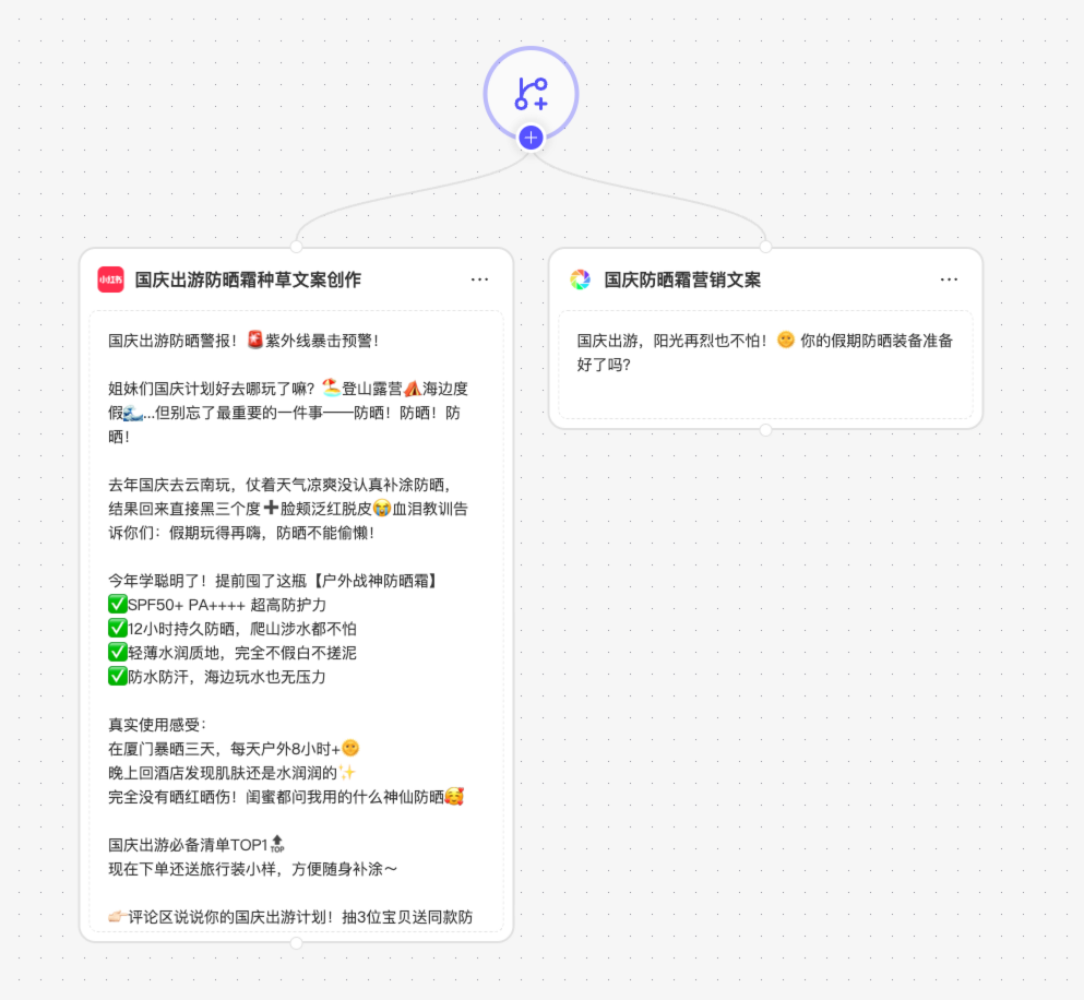 你当然可以有多个起点,多个分支,你既可以创作文案,也可以创作图片,你甚至可以将你的所有不同的内容创作想法,都在一个画布中呈现。