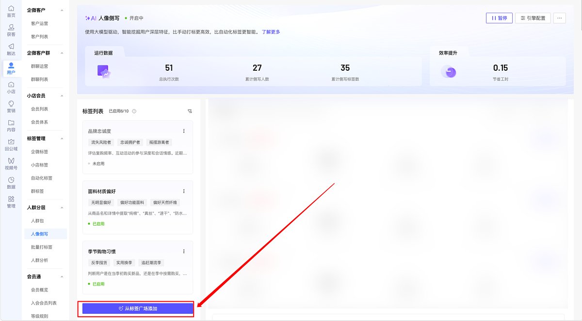 注意:在开启人像侧写引擎前,请务必尽可能完善地创建自己所需要侧写的标签,开启引擎后再添加标签,可能会导致客户侧写不完整。