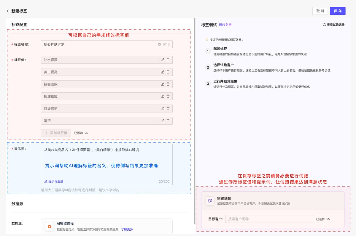 将侧写的结果调整到满意后,最后点击保存,完成标签的创建。