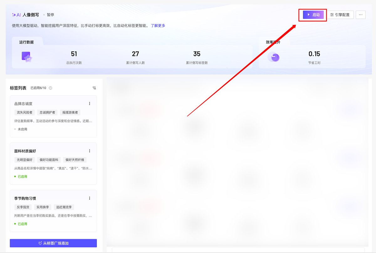 点击开启按钮,即可开启人像侧写引擎。侧写标签将在次日生效(需要保持引擎开启状态)。