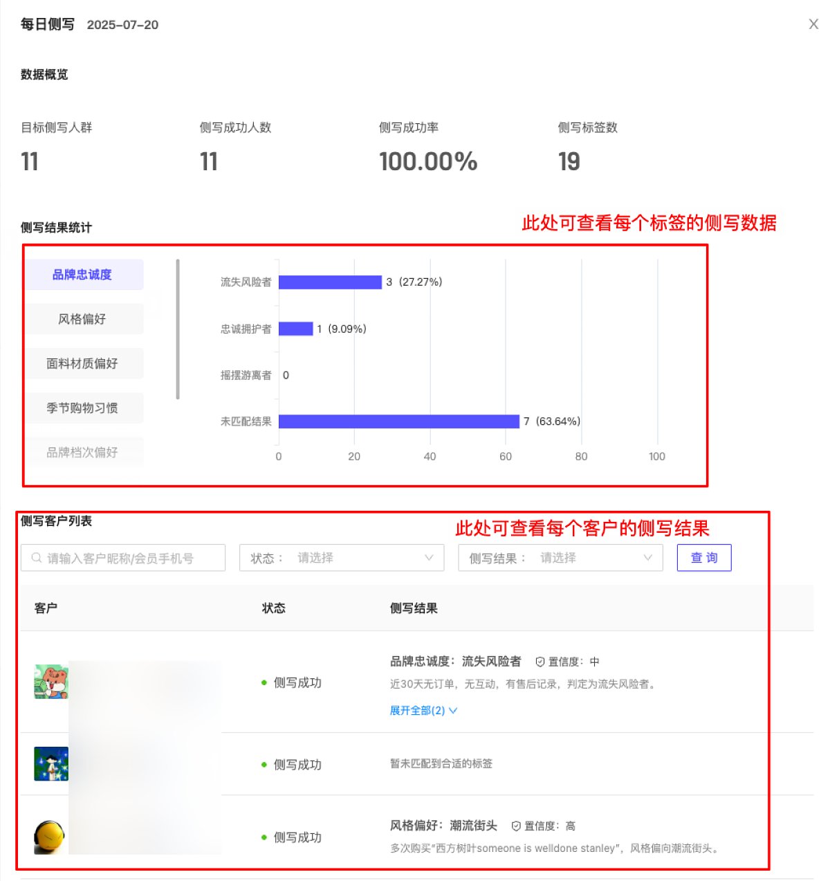 开启引擎后,次日会生成当天跑的侧写任务,点击查看详情,即可查看当天任务的侧写数据。