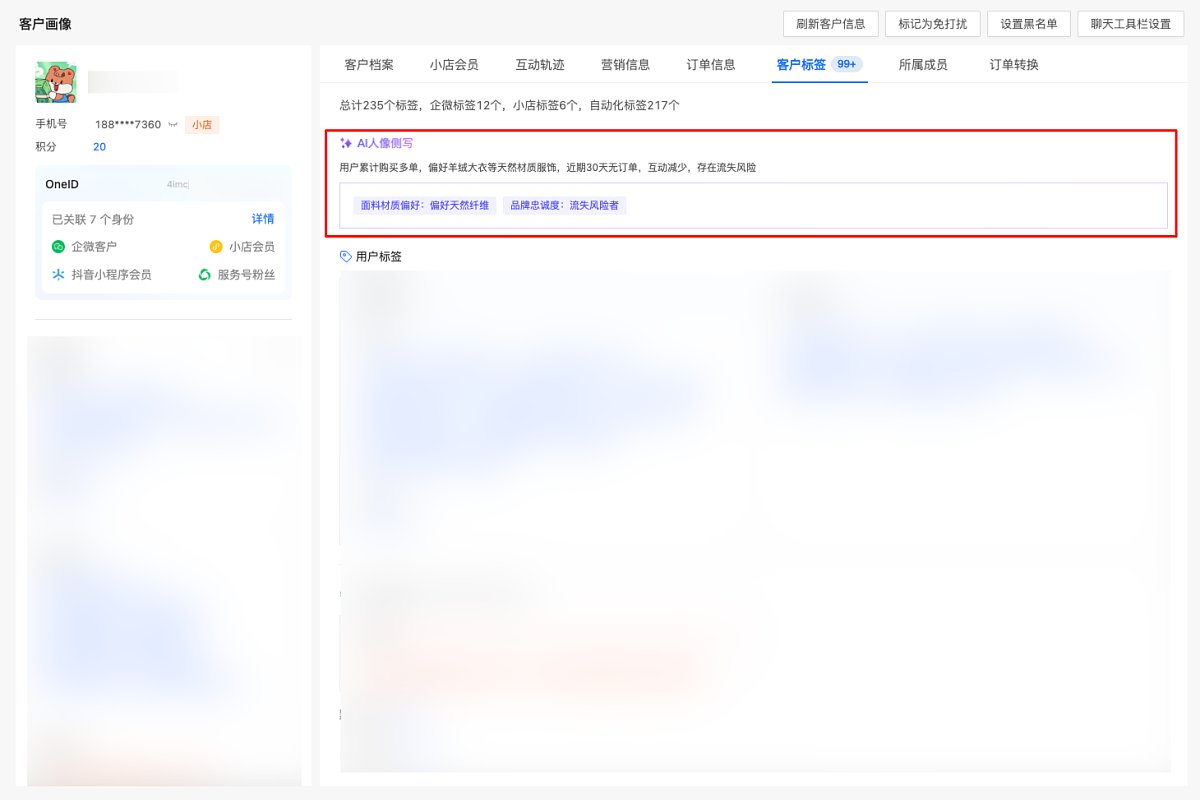AI辅助完善客户画像,千人千面,为企业给客户提供个性化的客户关怀提供数据基础。